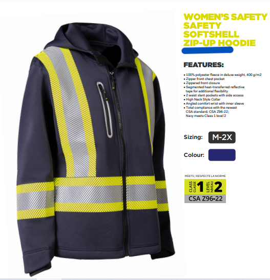 Ladies Hi Vis Hoodie in Navy CSA Z96-22 Class 1 Level 2 in a Super Nice Material